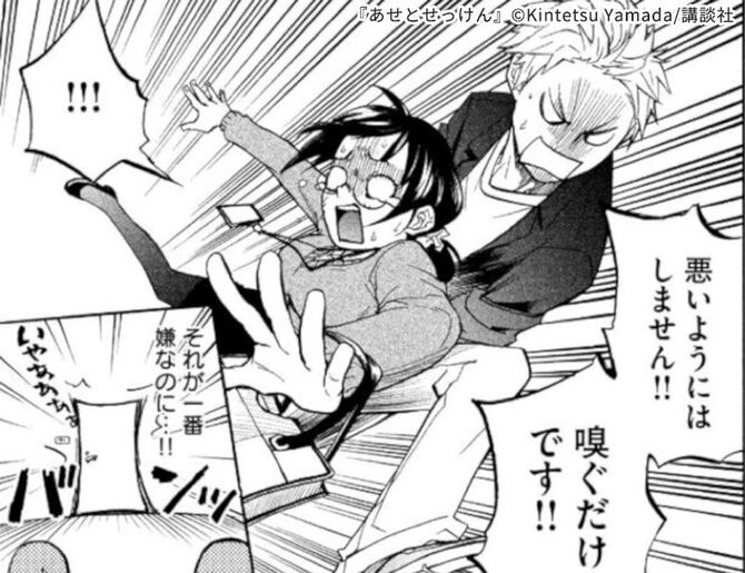 本作の感想や評価を見ていると、次の香太郎の台詞をピックアップしているものが多いようです。 「会社のためです!これから毎日1週間…俺は君のにおいを嗅ぎにきます!」 ものすごくインパクトのある台詞ですね。こんな出会い方をするシチュエーションの漫画はなかなかありません。 麻子が重度の汗っかきであることにコンプレックスを持っていることもあって、これからどうなっていくのかという期待が、読めば読むほど膨らんでいきます。